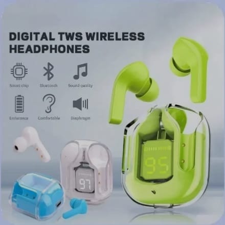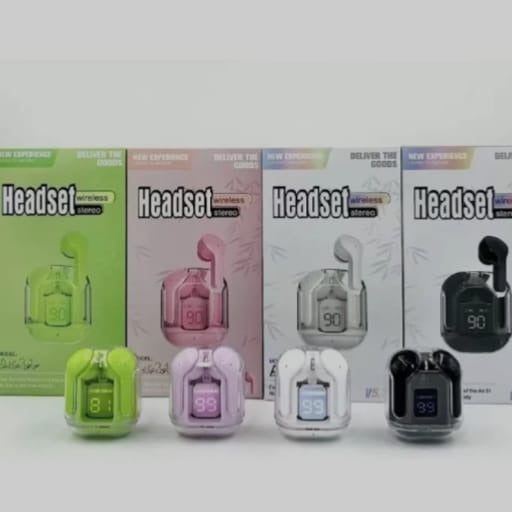 AIR31 Wireless Bluetooth 5.3 Earbuds with Mic & Bass Stereo Includes Transparent Charging Case & Type-C Cable – Sports Ready